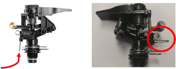 • Full circle coverage – Move the trip pin to the up position.