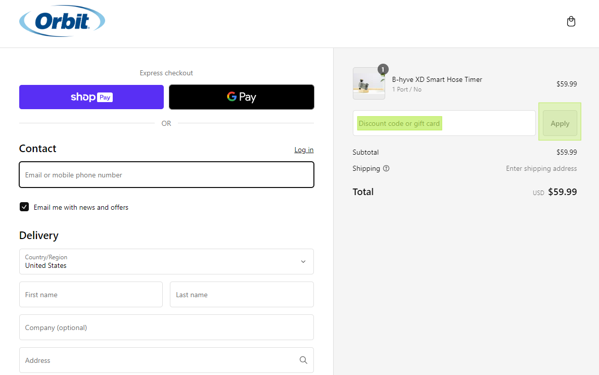 Once you are on orbitonline.com and have an item in the shopping cart, you’ll find a promotion code field on the right side. If you’re taking advantage of a promotion, you can enter a valid promotional code and select “Apply”.