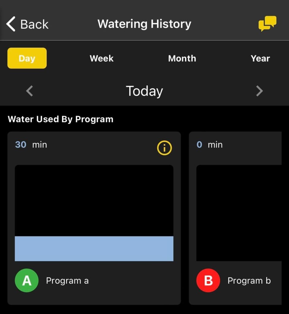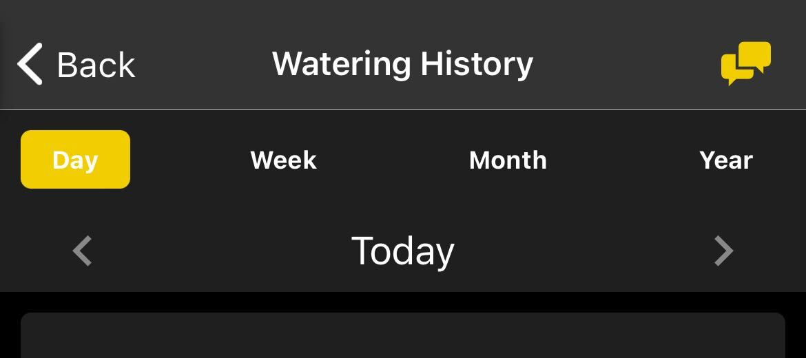 The Watering History page will show you a summary of data from your previous watering events.